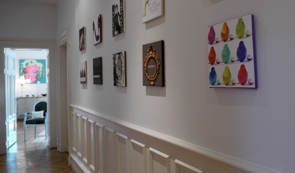 Otro truco para los pasillos que no son muy alargados, es pintarlos igual a la habitación que les sigue, de modo que se pierda el final del pasillo en la próxima estancia y visualmente, parezca más profundo.