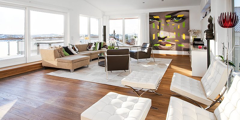 Igualmente puedes jugar con los cojines. Juega con la acumulación de éstos en los sofás y los sillones del salón y crea un efecto confortable y acogedor. Para darle aún más estilo al espacio puedes colocar incluso un puf del mismo material de los cojines.