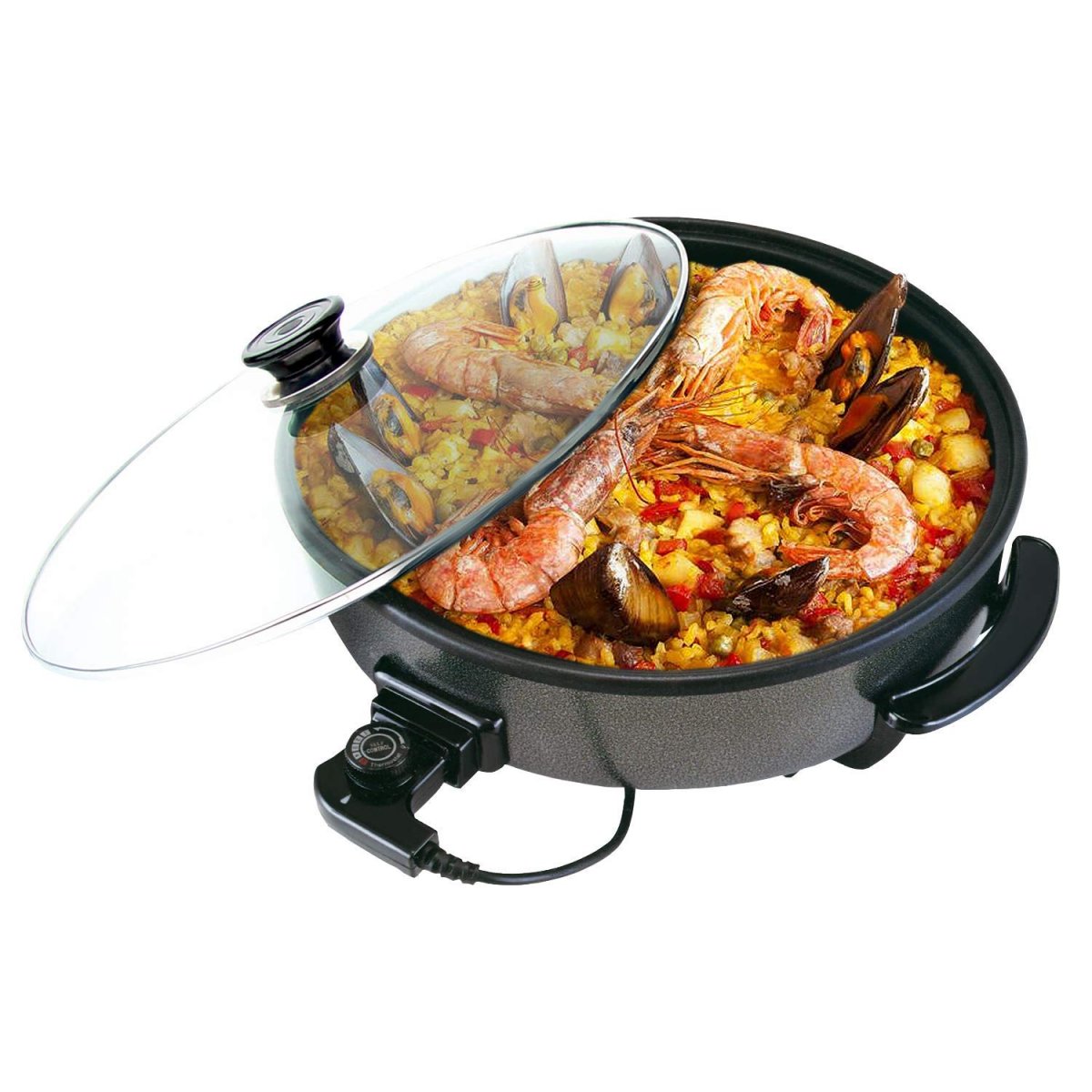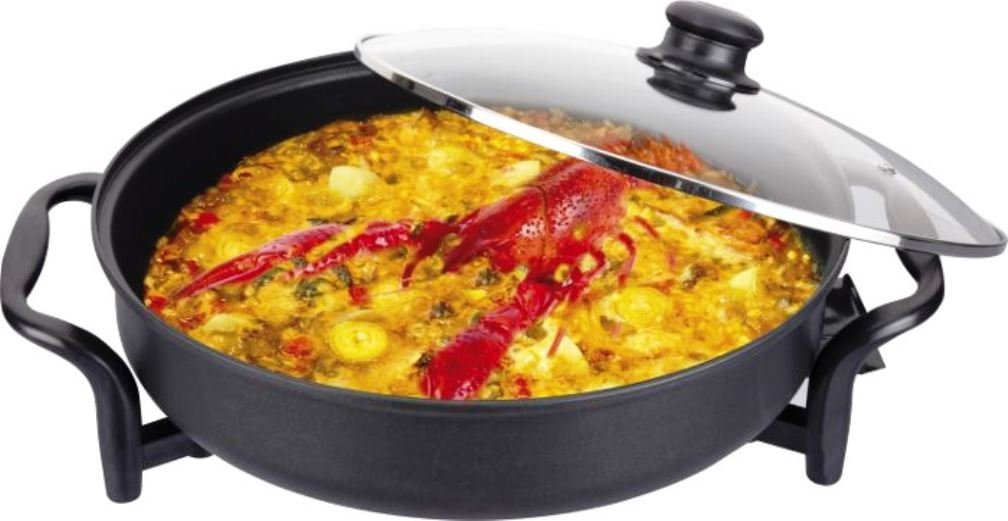 En tercer lugar hemos escogido una paellera eléctrica multiusos perfecta para tener en tu cocina y poder preparar deliciosas paellas, arroces o recetas similares y también para usar como wok, parrilla, sartén o plancha. Tiene una superficie de gran tamaño, con lo que podrás cocinar para bastante gente y además puedes cocinar sin usar nada de aceite, con lo que tus menús se volverán mucho más sanos.