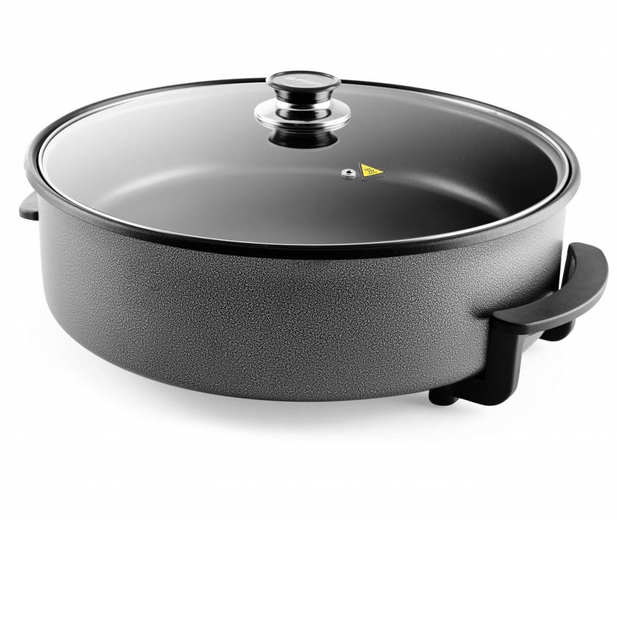 La primera paellera eléctrica seleccionada por nuestros expertos es un dispositivo ideal para poder cocinar grandes cantidades de alimentos. Se trata de una paellera perfecta para cocinar de forma eficiente, sencilla, pero sobre todo: sana. Puedes elaborar todo tipo de recetas usando simplemente unas gotitas de aceite ya que incorpora un eficiente recubrimiento cerámico para que puedas cocinar sin que se peguen los ingredientes. Además viene con una tapa de cristal templado que cuenta con una alta resistencia al calor.