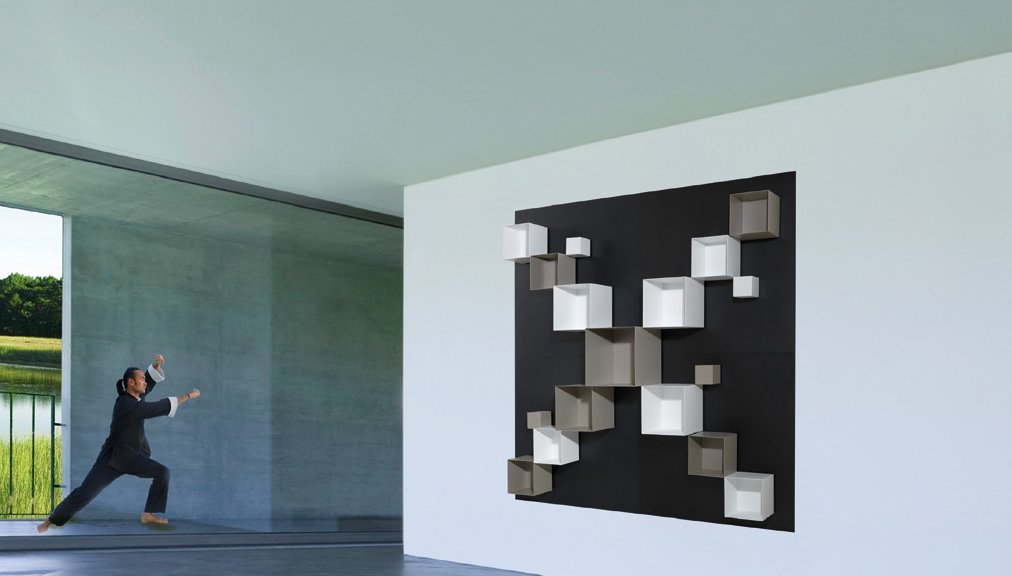 Absolutamente todo es modulable con Magnetic Spirit, incluso el fondo. Éste no tiene una forma fija, sino que somos nosotros los que definiremos su forma gracias a los pequeños módulos de formas geométricas combinables entre sí. Tienes tres tipos de tonos a elegir (negro, blanco y gris) y cuatro tipos de formas.