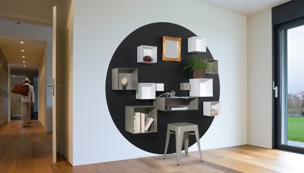 El concepto es sencillo: sobre un soporte de metal lacado podemos colocar los módulos magnéticos, organizándolos fácilmente, y recolocándolos de acuerdo con nuestras necesidades o estados de ánimo.