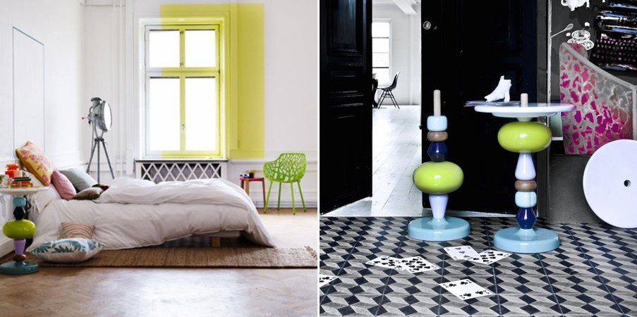 Una de sus creaciones más notables es la mesa modular Shuffle. Ésta se inspira directamente en los juegos de madera infantiles. La mesa la podemos componer y descomponer pieza a pieza, pudiendo tener una composición diferente cada día. Además de este detalle tan original, me gusta mucho el colorido que la mesa desprende.
