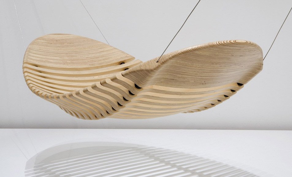 Adam Cornish diseñó la hamaca Flex para una agencia de Sydney. Hecha con madera contrachapada e hilo acerado, no sabemos de su comodidad, pero sí de su diseño, que es excepcional.