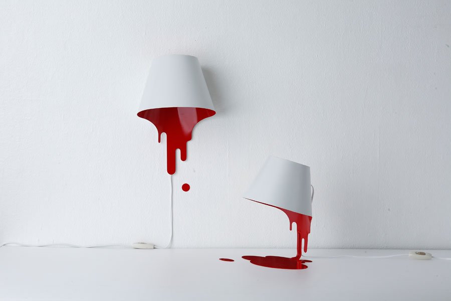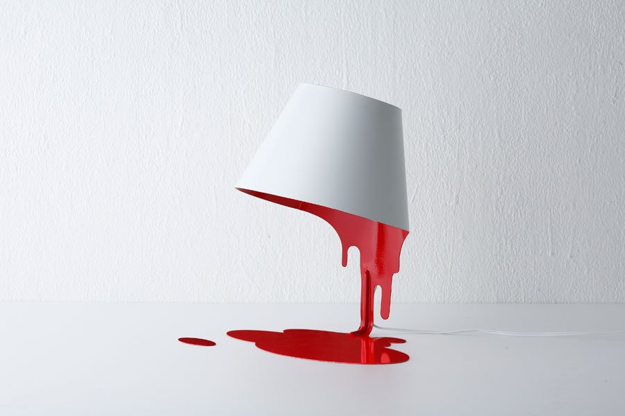 Lámpara Liquid Lamp de Kyouei Okamoto. Quizás la primera impresión que te dé esta lámpara no te guste porque te parezca que la lámpara está sangrando, pero te aseguro que conforme más la veas, más te gustará. O por lo menos esa es la sensación que esta lámpara ha causado en mí.