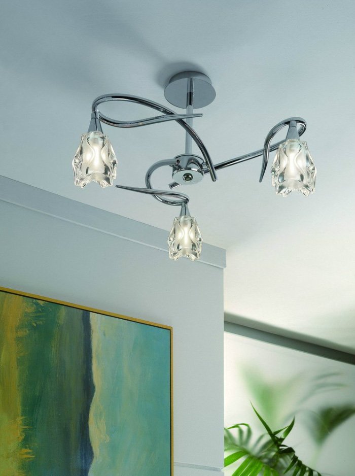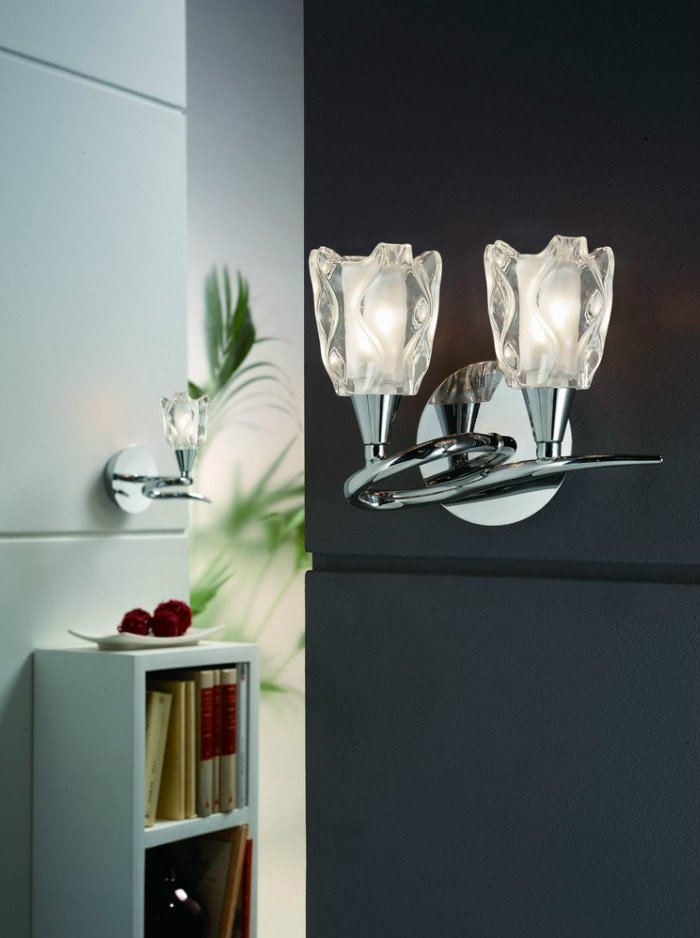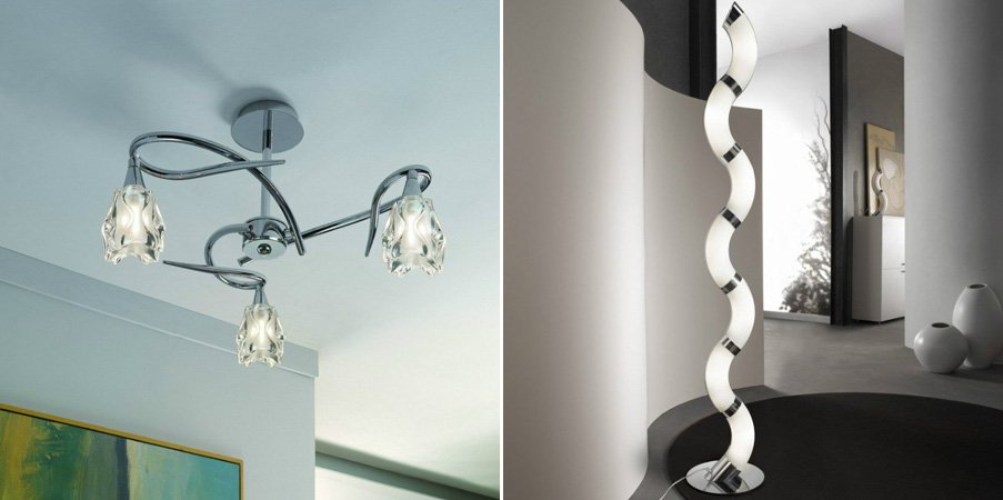 Colección de lámparas Amel. Esta colección es una de las propuestas más destacadas de la firma. Las lámparas que la componen presentan sinuosas y elegantes formas creando formas parecidas a bucles infinitos que le dan mucha vistosidad a la colección. Sus increíbles tulipas acaban de perfeccionar cada una de las lámparas.