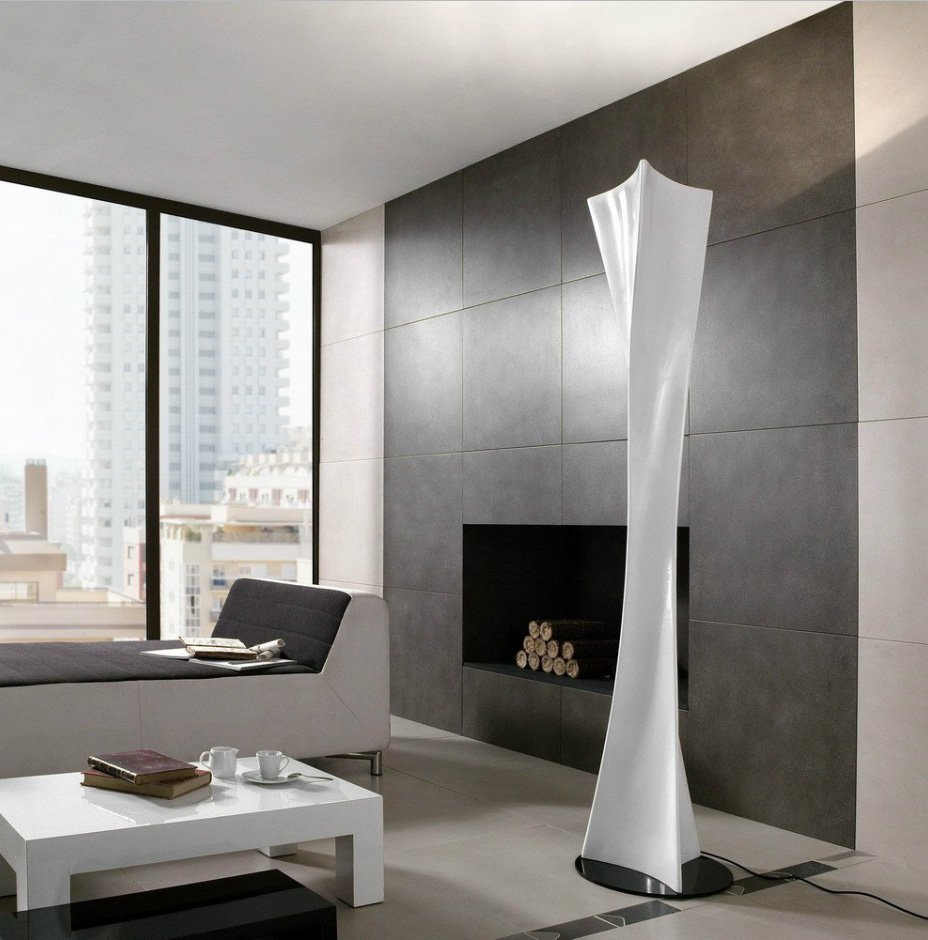 Lámpara de pie Twist. Personalmente ésta es una de las colecciones de Santiago Sevillano que más me gustan a mí. Esta lámpara es más una pieza de arte que una lámpara. Esta “escultura” gira y se enrosca sobre sí misma generando una belleza visual indescriptible.