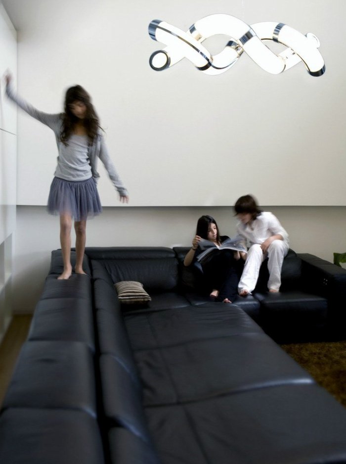 Colección de lámparas Guss. Las formas zigzagueantes de estas lámparas me hacen pensar en un juguete infantil en el que cada pieza ondula y serpentea queriendo combinar perfectamente con la otra pieza y creando un conjunto perfecto.