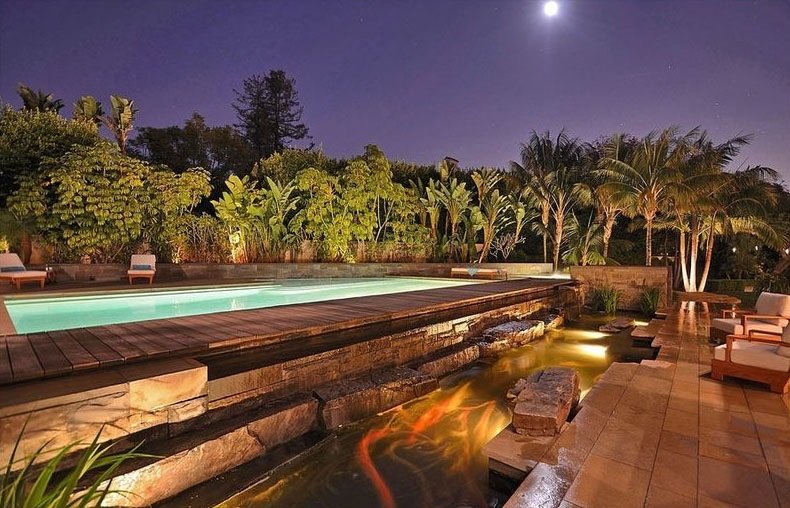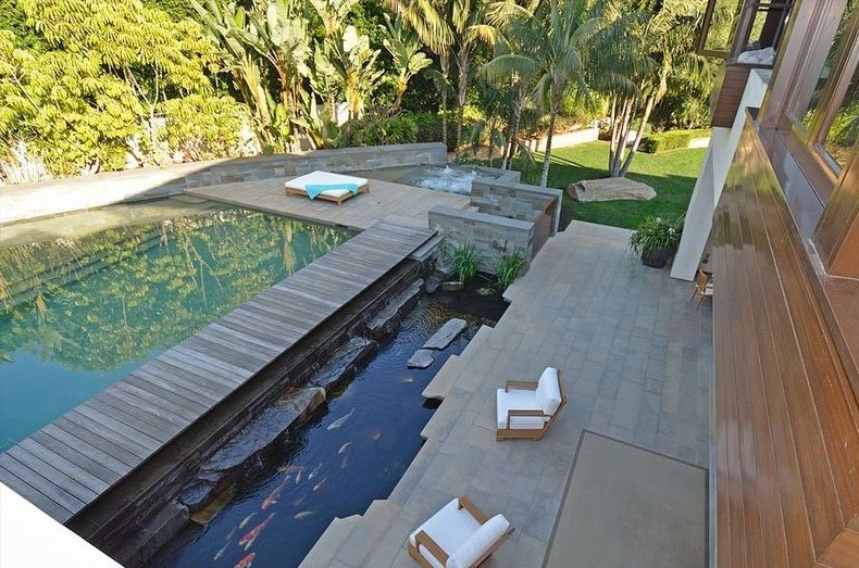 La casa tiene alrededor de 1.180 metros cuadrados, y el precio de cada metro ha sido valorado en 17.000 dólares. ¿Qué hay encerrados en esos más de mil metros cuadrados de mansión? 7 habitaciones, 10 cuartos de baño, una sala de cine, una porción de playa privada, una gran piscina, un estanque, un garaje para cinco coches, una terraza de ensueño, gimnasio privado, dos pequeñas residencias independientes de la casa principal, y un largo etcétera de lujos y comodidades.