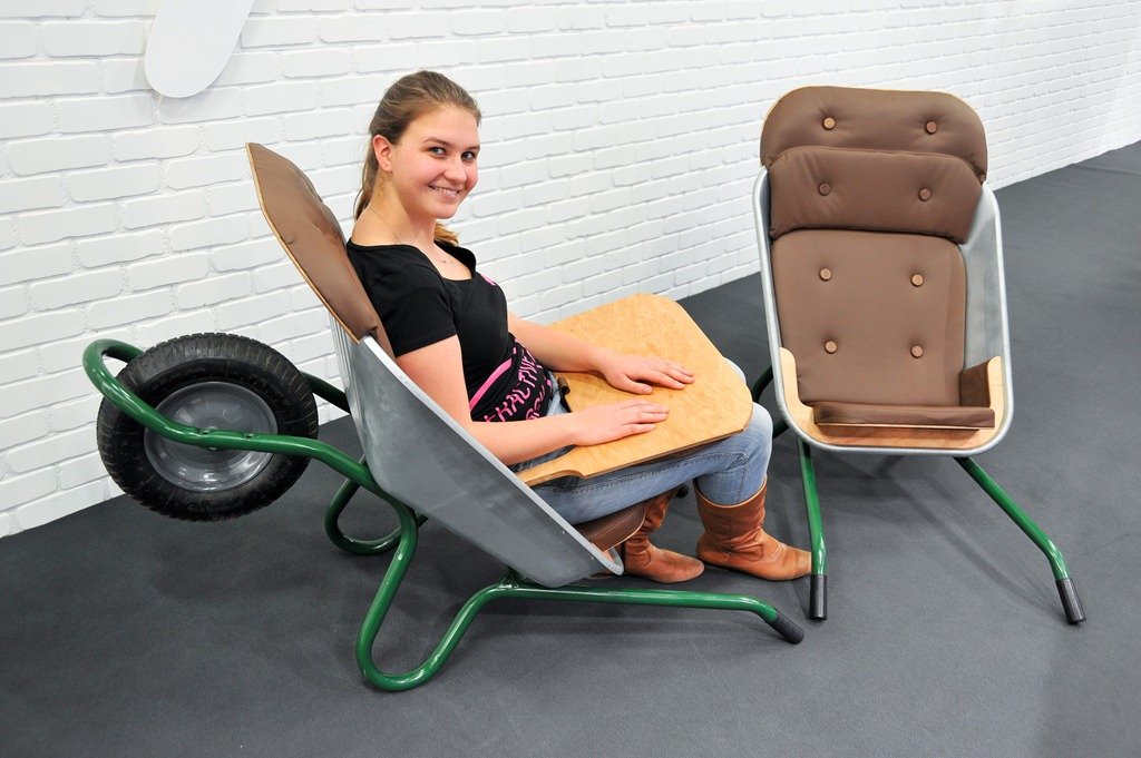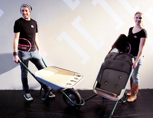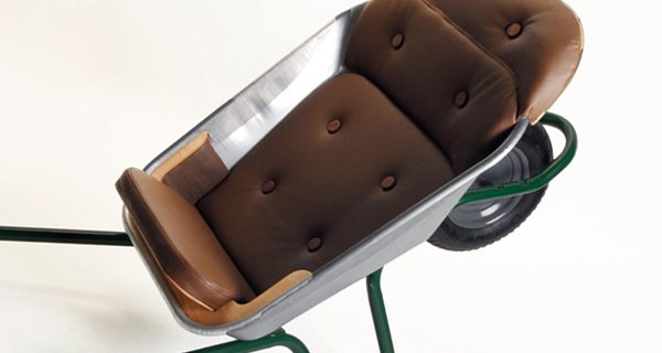 Dorothea Wirwall y Sascha Urban se han asociado para ofrecernos este maravilloso proyecto lleno de creatividad. Entre ambos han conseguido transformar algo tan común como una carretilla en una cómoda butaca lounge.