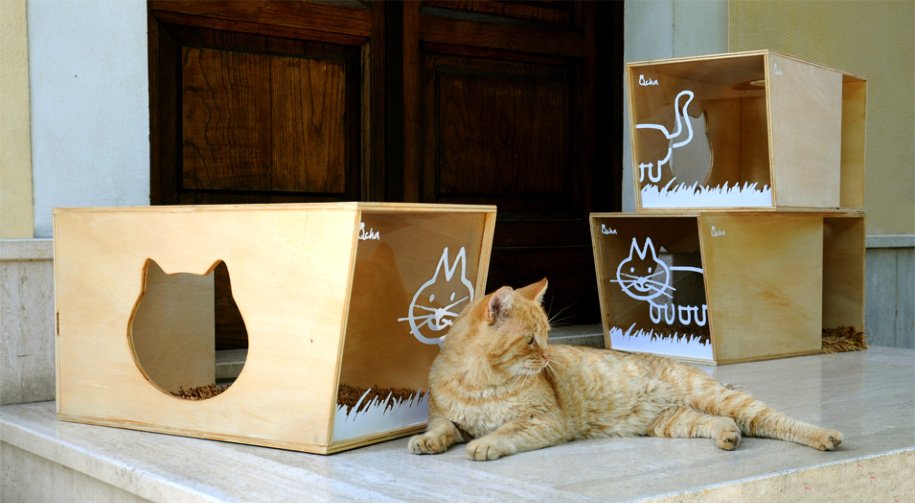 La casa para gatos Qcha presenta un diseño innovador y práctico con diversas aperturas para que los animales puedan entrar y salir libremente de ella. Además presenta un lado totalmente transparente, con el que el gato podrá vigilar todo lo que ocurre a su alrededor desde una posición privilegiada.