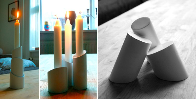 Y sigo con el sensacional candelabro Trix. En éste podemos colocar una vela cuando está replegado, o tres si está desplegado. Y es que sus tres cilindros pueden superponerse formando solo uno.