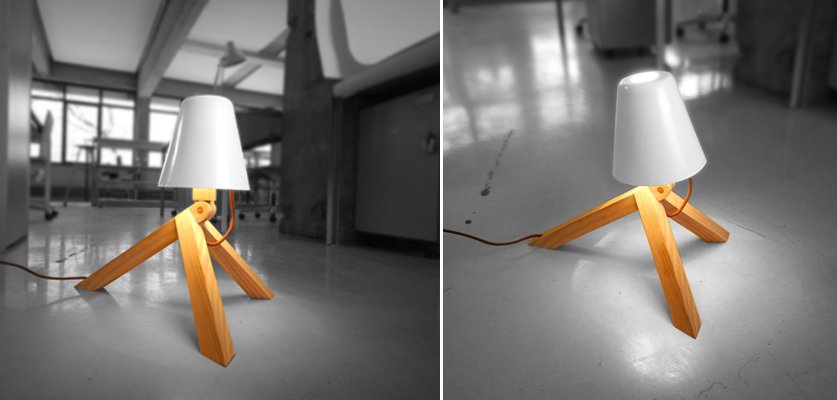 La lámpara Spiff está basada en la sencillez y naturalidad de los juguetes antiguos de madera. La lámpara puede inclinarse, permitiéndonos poder ajustar la dirección de la luz. Me encanta su original trípode de madera que le sirve como base y la naturalidad que desprende su diseño.