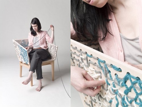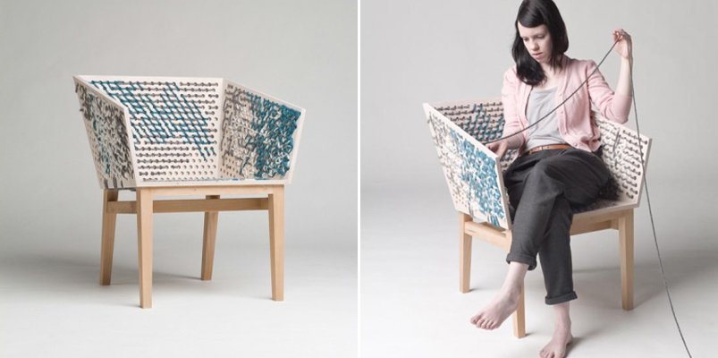 Y he querido empezar con una silla muy curiosa de la diseñadora alemana Susanne Westphal. Esta silla especial para tricotar se llama Stitch y tanto su diseño como su comodidad dependerán de nosotros.