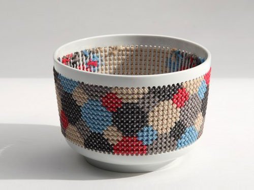 Y quiero terminar con unas obras que se basan en los mismos principios que las anteriores, aunque éstas no nos quieren hacer partícipes de su diseño. El diseño de la colección Stitched del holandés Tord Boontje también se remata con el tricotado y el crocheteado, pero en estas obras no podemos influir.
