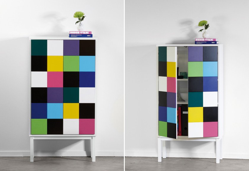 Y he querido empezar con esta peculiar creación. El pequeño mueble Collect es un armario ideal para tus cosas favoritas. Su colorido diseño le da muchísima personalidad a la pieza y lo hace ideal para un ambiente desenfadado y juvenil.