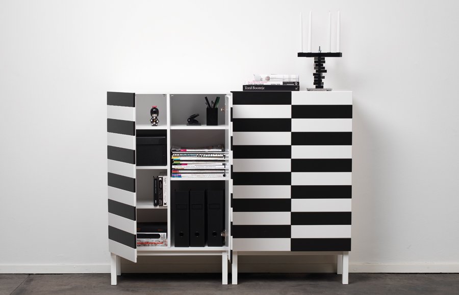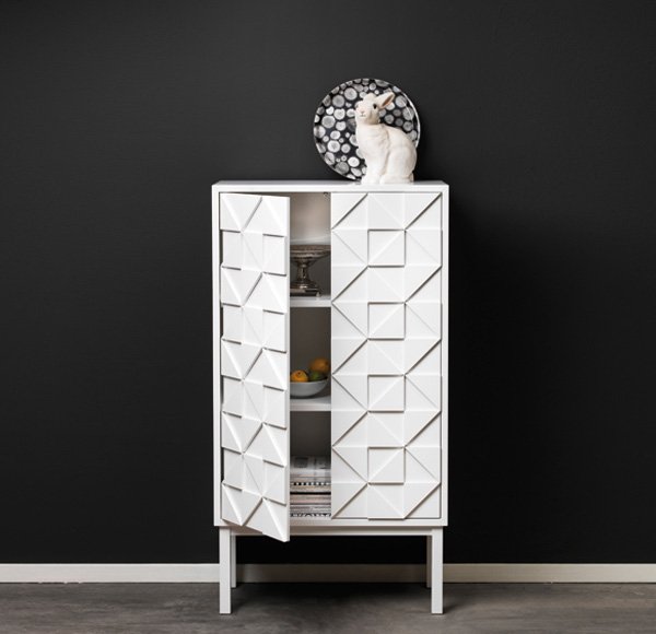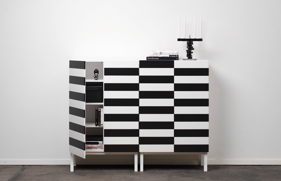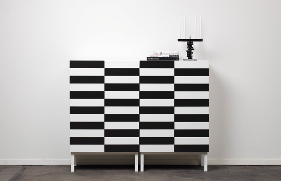 El nombre de la cómoda NO.24 le debe a su nombre a los 24 rectángulos blancos y negros que componen su parte frontal. No es la primera vez que os comento que la combinación de blanco y negro es ideal para crear ambientes modernos llenos de elegancia. Y precisamente es eso lo que más me gusta de esta obra: la clase y el estilo que desprenden sus toques de modernidad.