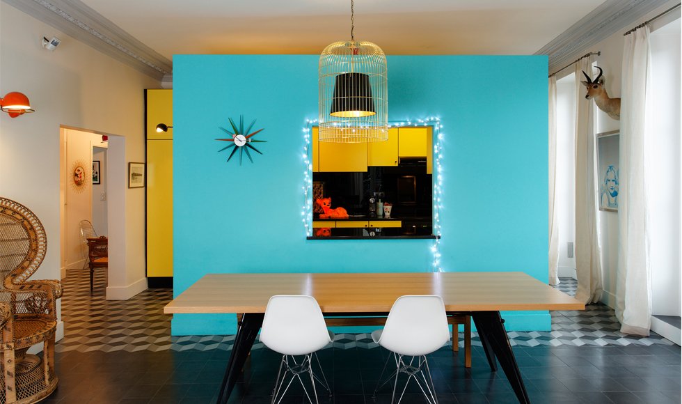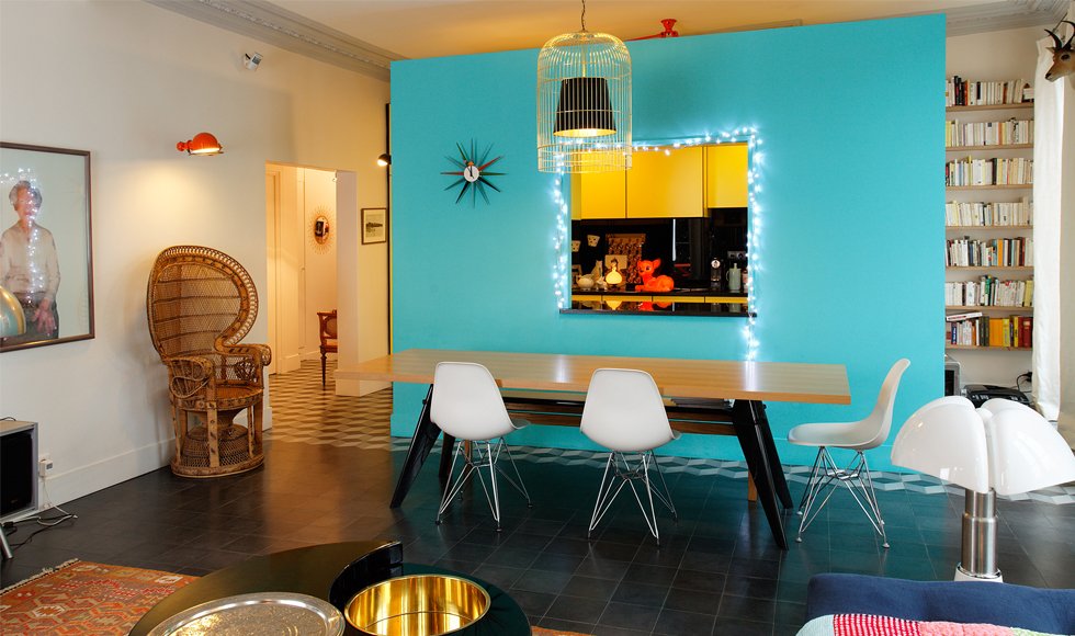 Fíjaos en lo bien que quedan las sillas Eames, la lámpara Jieldé, el reloj Vitra o la lámpara en forma de jaula Sunset Ascete, entre otros. Allá donde mires encuentras un objeto que llama tu atención.