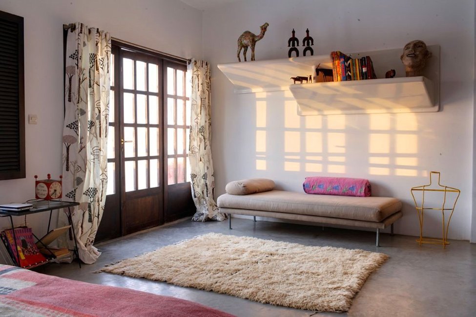 Esta decoración pertenece a una casa de campo marroquí. Este espacio caluroso combina a la perfección elementos tradicionales marroquís con pinceladas modernas y toques vintage, creando un conjunto armonioso, acogedor y muy original.