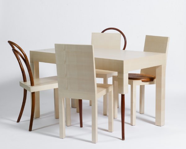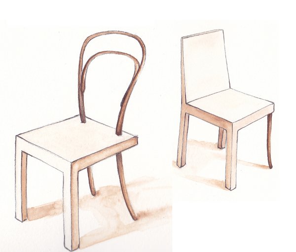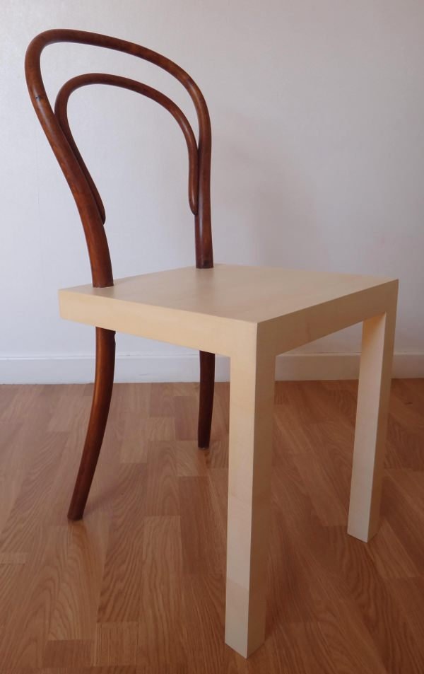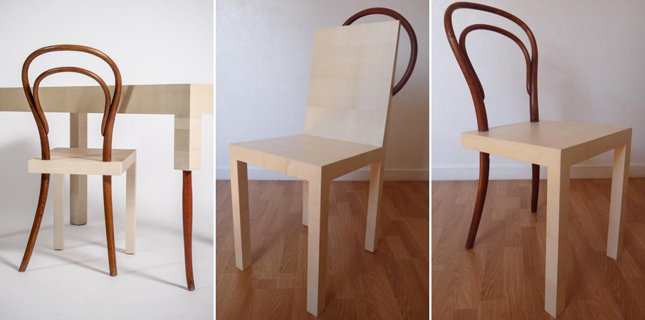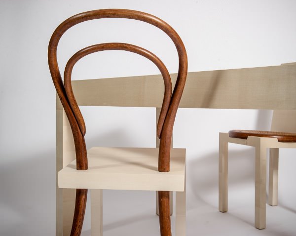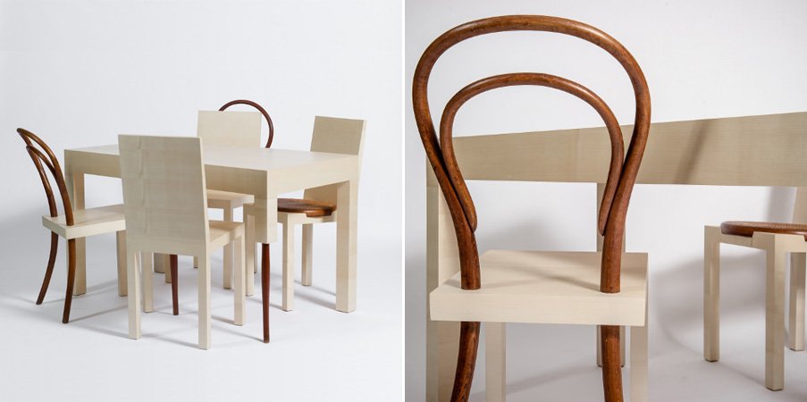 Cada una de estas piezas conserva su función original, aunque a la vez forma parte de una obra completamente diferente de líneas rectas y minimalistas (estilo completamente opuesto al de la silla Thonet inicial).